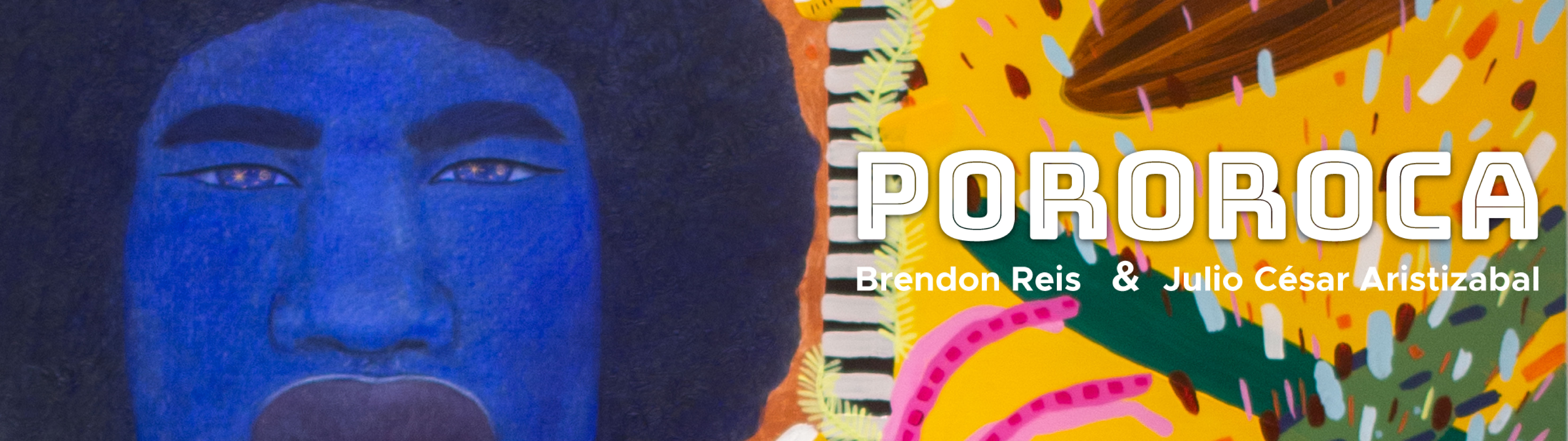 Pororoca é o encontro entre águas. Quando as águas do mar se deparam com as águas do rio, imensas ondas são formadas. O nome desse fenômeno tem origem Tupi e ocorre na foz do Rio Amazonas, no litoral do Pará e no rio Mearim, localizado no Estado do Maranhão. Poro’roka significa estrondar. A união dessas duas potências naturais causa impacto, fervor, estrondo. Na exposição Pororoca, apresentada pela Galeria Inox e pela Galeria Radiante, também temos o encontro de duas forças naturais: Brendon Reis e Julio Cesar Aristizabal.